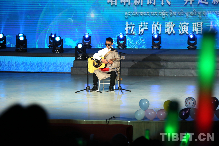 資料圖:視障人士拉巴桑珠就讀于拉薩師范高等??茖W校,他在拉薩師范高等??茖W校校園“十佳歌手”大賽中獲得冠軍