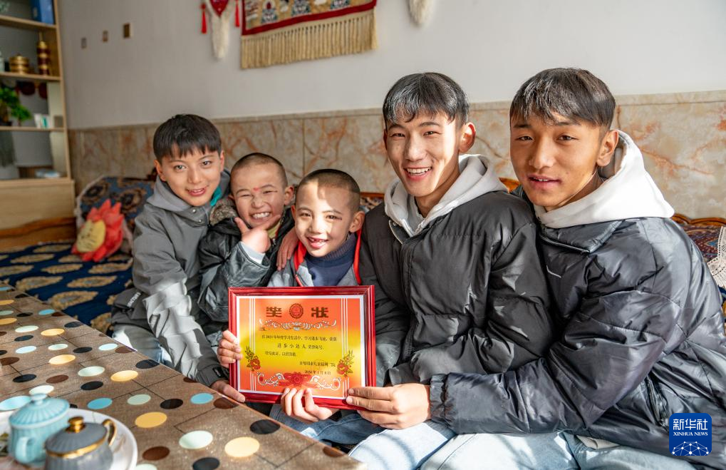 1月8日,“幸福家庭”的孩子們展示獎狀。新華社發(fā)(丁增尼達(dá)攝)