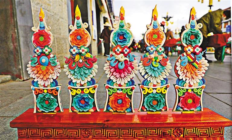 “切瑪”既是新年供奉物,又是日常的擺設(shè)品、吉祥物,它預示著過去的一年生活美滿,又表達著新的一年風調(diào)雨順、五谷豐登、六畜興旺的美好愿望。