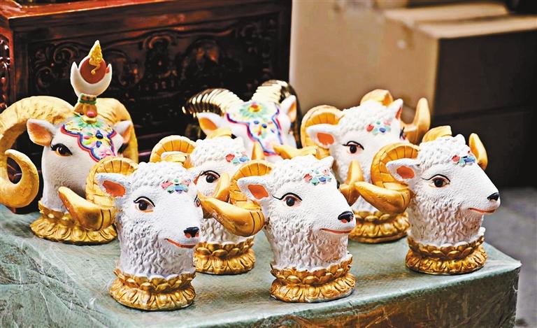 塑彩羊頭在藏語中稱為“隆果”,在雪域亙古浩瀚的歷史中,高原兒女自古以來便認定羊是吉祥的動物,代表了藏族群眾祈盼來年五谷豐登、六畜興旺。