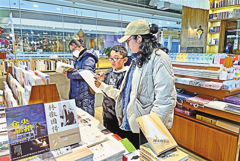 圖為寒假期間,家長(zhǎng)帶著孩子來到拉薩某書店選購書籍。記者 旦增蘭澤 攝