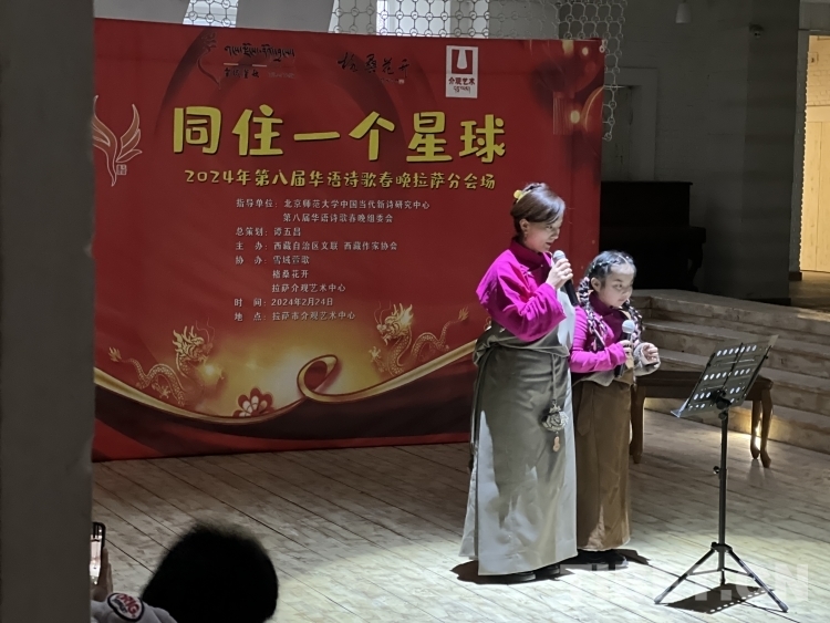 中國西藏網訊 2月24日元宵節(jié)之夜,以“同住一個星球”為主題的“2024年第八屆華語詩歌春晚拉薩分會場詩歌朗誦會”在拉薩介觀藝術中心舉行。此次活動由西藏作家協(xié)會主辦、雪域萱歌、格?;ㄩ_、拉薩介觀藝術中心協(xié)辦。