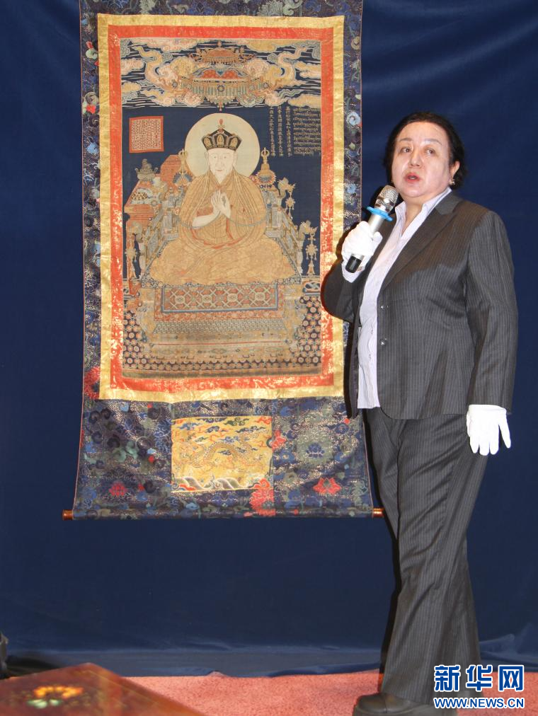 羅布林卡管理處文物科科長(zhǎng)色莉瑪帶來(lái)了“大慈法王唐卡”。