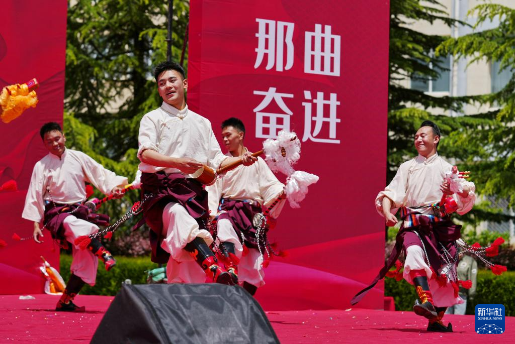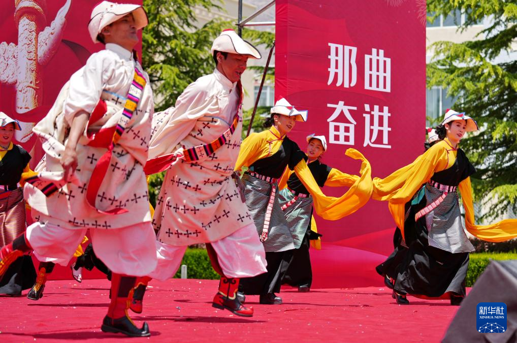 5月12日,在西藏職業(yè)技術(shù)學(xué)院職業(yè)教育活動周啟動儀式暨比如縣非物質(zhì)文化遺產(chǎn)進(jìn)校園活動上,比如縣民族藝術(shù)團(tuán)的演職人員在表演節(jié)目。新華社發(fā)(趙大志攝)