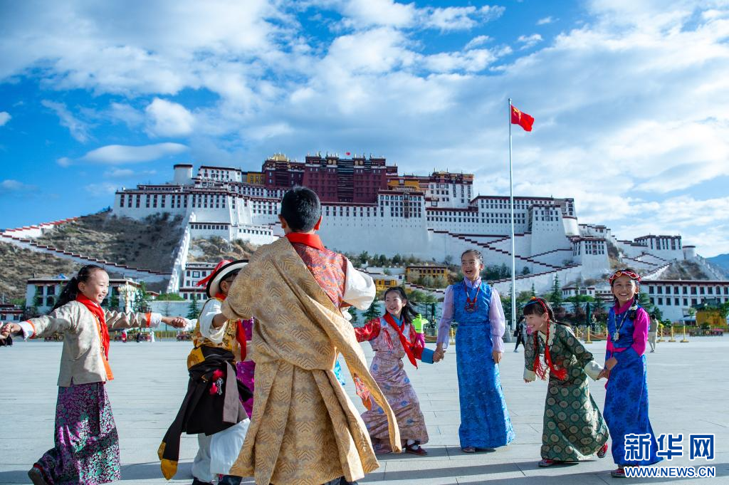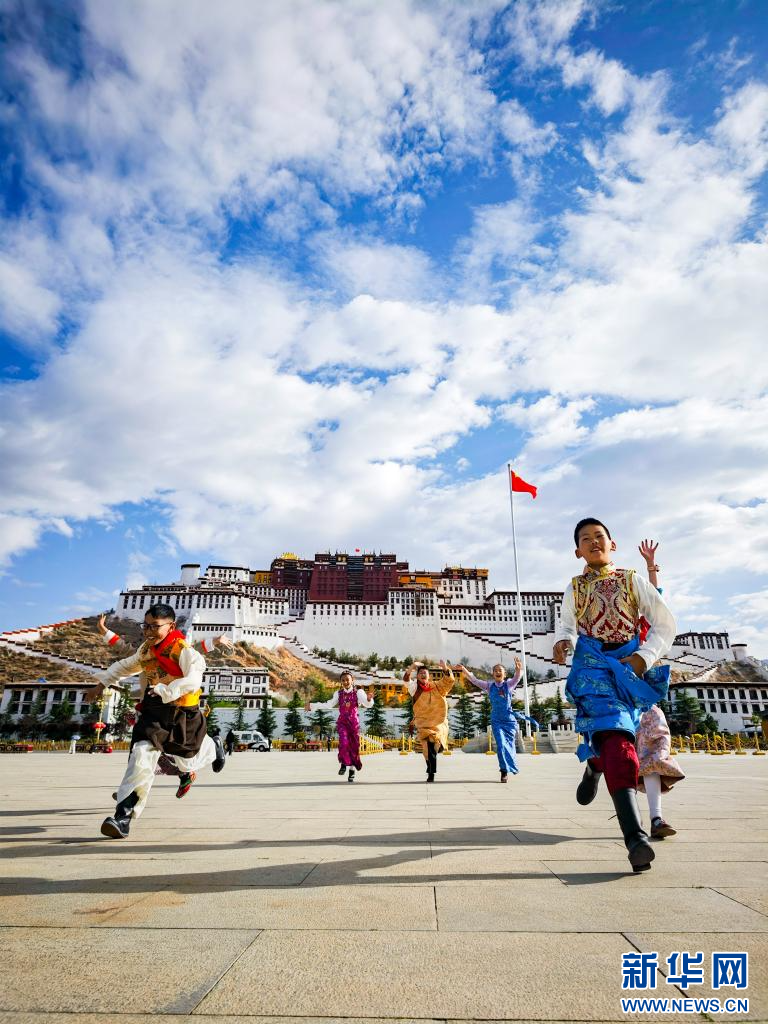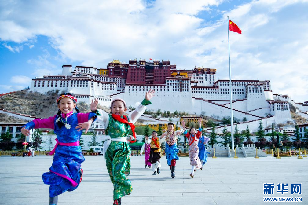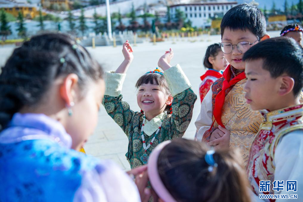 “六一”國際兒童節(jié),小朋友們?cè)谖鞑刈灾螀^(qū)拉薩市布達(dá)拉宮廣場歡慶自己的節(jié)日。