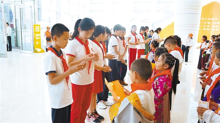 孩子們在中國婦女兒童博物館與北京市東城區(qū)板廠小學學生互贈禮物。中國兒童中心供圖