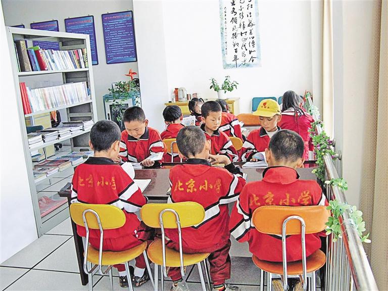 拉薩北京小學(xué)的學(xué)生在閱覽室看書。