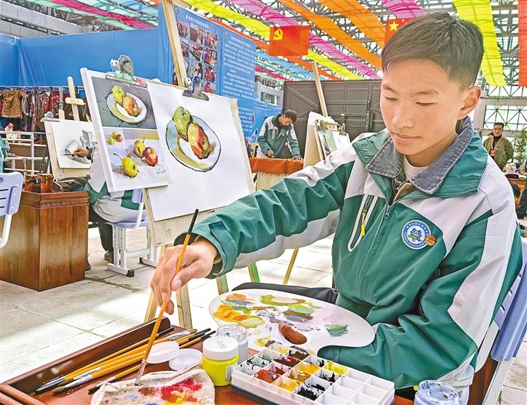 圖為那曲市職業(yè)技術學校的學生在進行繪畫創(chuàng)作。記者 萬靖 攝