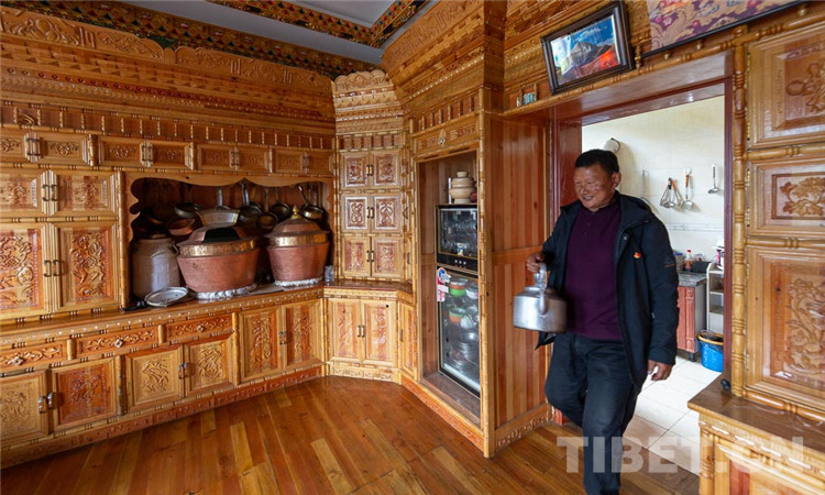 來到村民仁青家里,仁青正在煤氣灶上燒水?!捌綍r(shí)自己在工地上開裝載機(jī),現(xiàn)在家庭年收入10多萬元。”談起現(xiàn)在的生活仁青開興地說,以前只有過年才可能吃到的大米,現(xiàn)在已經(jīng)是每家每戶的家庭便飯。