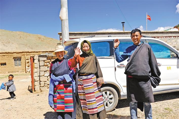 走在小康路上的班戈縣多爾格村古如堅參一家準備出行的情景。