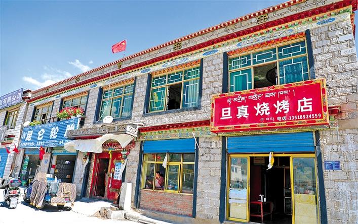 因特殊的家庭情況,旦增卓嘎家在2015年被評(píng)定為建檔立卡貧困戶,但這并沒有使他們產(chǎn)生惰性,喪失拼搏的勇氣?!懊撠氈赂浑x不開政府和各級(jí)干部的幫助,但更主要的還是要靠自己的努力,靠自己的雙手,不能只等著政府救濟(jì)?!痹鯓硬拍苤\一條更好的出路,讓日子過得寬裕起來?這些問題時(shí)??M繞在旦增卓嘎心頭。2015年,旦增卓嘎察覺到燒烤這一塊有很大的商機(jī),自家周圍沒有一家燒烤店。在和丈夫商量后,她利用自家房屋開設(shè)了旦真燒烤店,早上賣早餐,下午賣小吃茶點(diǎn),晚上賣燒烤。