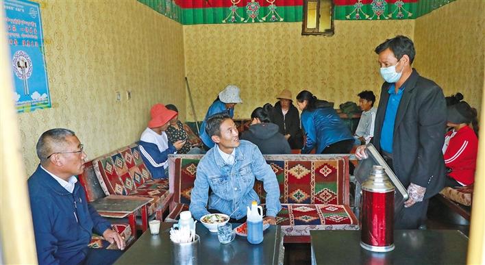 米瑪騎著三輪車為客人送飯。記者 劉斯宇 格桑倫珠 攝