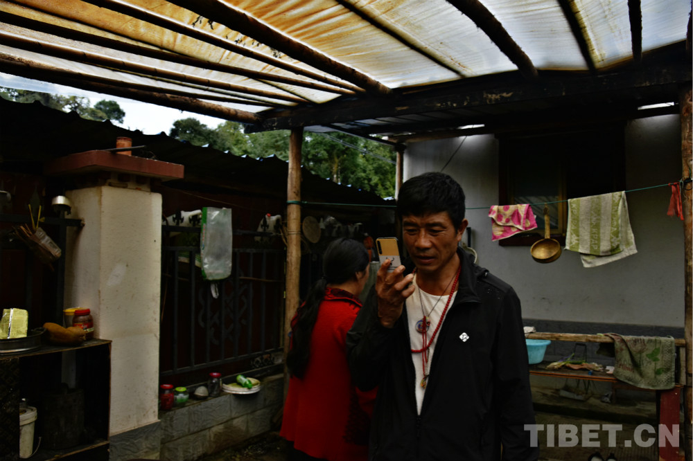 圖為西藏自治區(qū)林芝市墨脫鎮(zhèn)朗杰崗村村民高東在院中涼棚下接電話 攝影:王媛媛