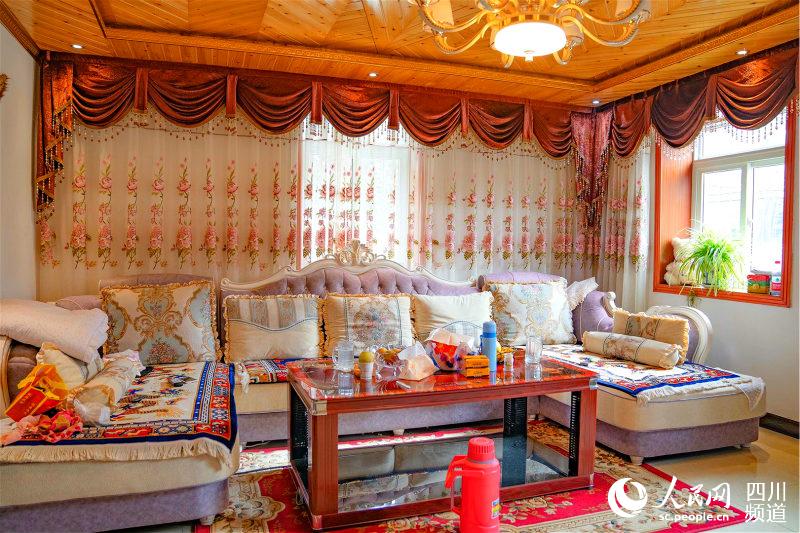 2006年,馬爾康為了保護開發(fā)好松崗土司官寨遺址,將長期生活在此的村民遷至山下集中安置點,在這里,每戶都是獨棟藏式民居,寬敞的房屋不僅窗明幾凈,新式的室內(nèi)裝修、現(xiàn)代化高科技家用電器、舒適的家居環(huán)境并不遜色城里人家庭。