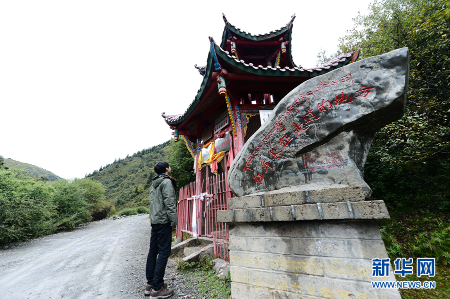 一位游客在瑪可河林場(chǎng)內(nèi)的紅軍溝駐足參觀。(資料圖)新華社記者吳剛攝