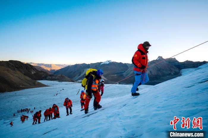 圖為第三極攀登者2020中國企業(yè)家冰川挑戰(zhàn)賽參賽者在登山途中。 當雄縣委宣傳部供圖