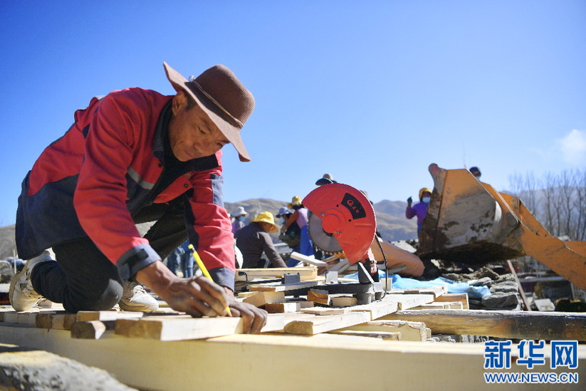 村民普布卓瑪家正在翻修舊房子。十幾個工人分工協(xié)作,分別承擔了切割木板、澆水泥、砌磚墻等工作,施工現場熱火朝天,井然有序。普布卓瑪說:“這幾年收入多了,生活好了,就想著把房子再翻修一下。”