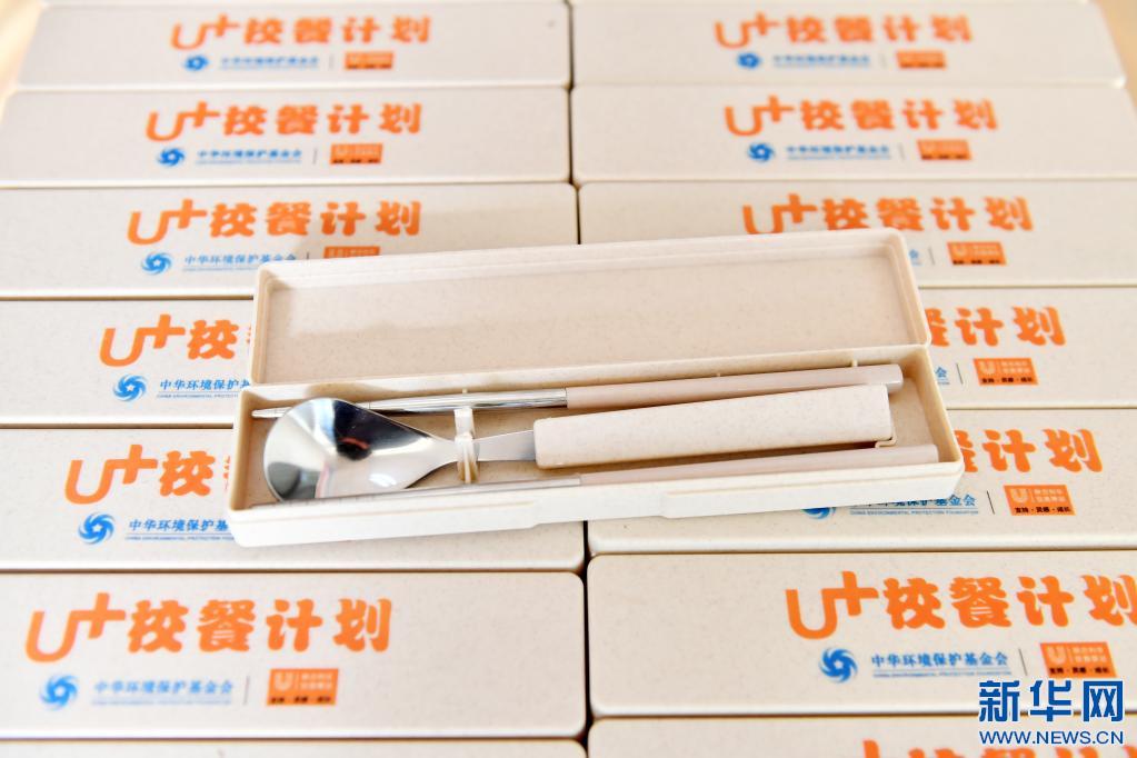 這是3月30日在米林縣中學(xué)拍攝的“U+校餐計劃”捐贈的便攜餐具。新華社記者 孫瑞博 攝