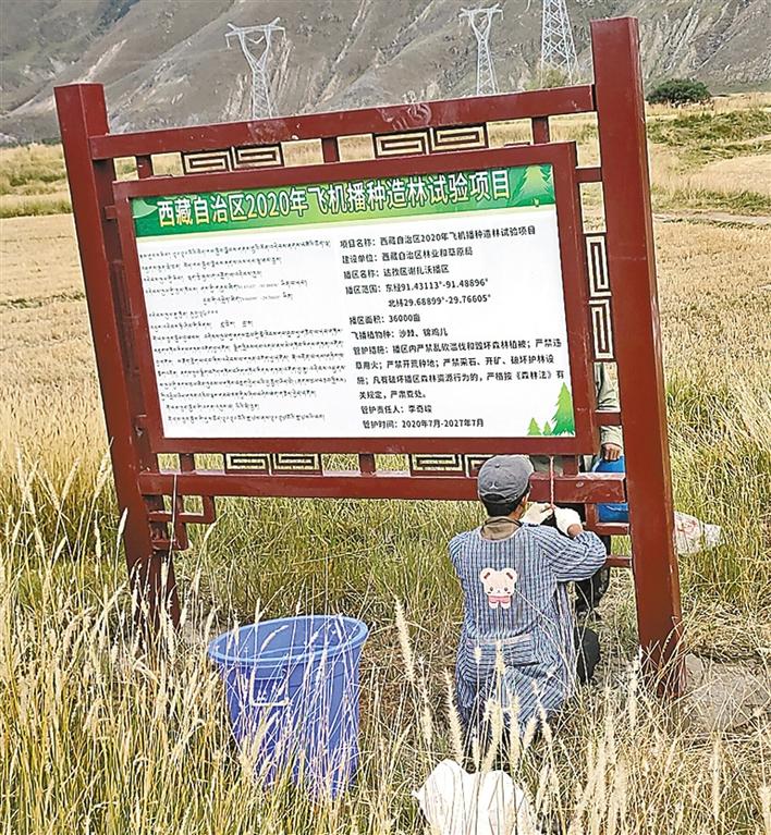 在柳梧大橋附近公路旁的一座山上,一排由綠樹組成的“建設(shè)美麗西藏”幾個大字讓人眼前一亮?!斑@就是我們公司設(shè)計完成的,花費(fèi)了我們很多心血,也因為這一單業(yè)務(wù)的成功,我們公司在市場上得到了認(rèn)可?!备裆K苤钢鴰讉€大字高興地說。