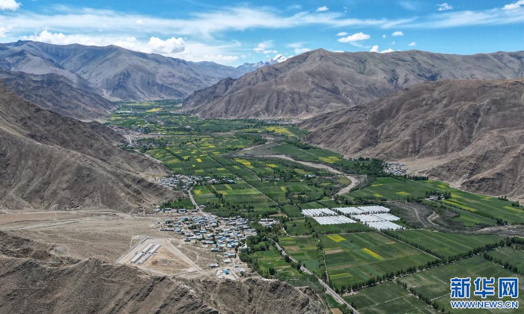 這是西藏山南市乃東區(qū)的農(nóng)田(無(wú)人機(jī)照片,6月24日攝)。新華社記者 司源 攝