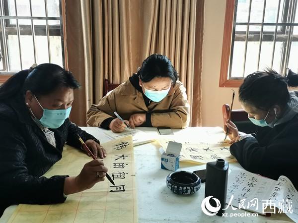 “村里有好多人喜歡書法,恰好城關(guān)區(qū)開展新時(shí)代文明實(shí)踐站·一村一特色文化品牌村(社區(qū))創(chuàng)建活動(dòng),我們就想著往這個(gè)方面打造一下?!辈檀宓谝粫浲恋锹迳=榻B。如今,每逢周六,村里會(huì)邀請(qǐng)拉薩市文聯(lián)、拉薩市書法家協(xié)會(huì)的書法名家,為熱愛書法的村民們傳授技藝。
