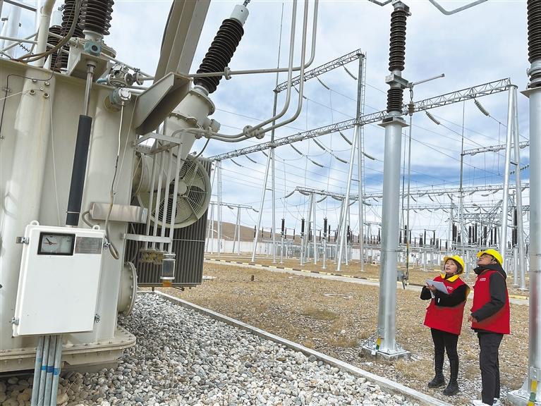 圖為國網(wǎng)那曲供電公司變電運(yùn)檢中心員工在對110千伏那曲變電站設(shè)備進(jìn)行檢查。記者 萬靖 攝