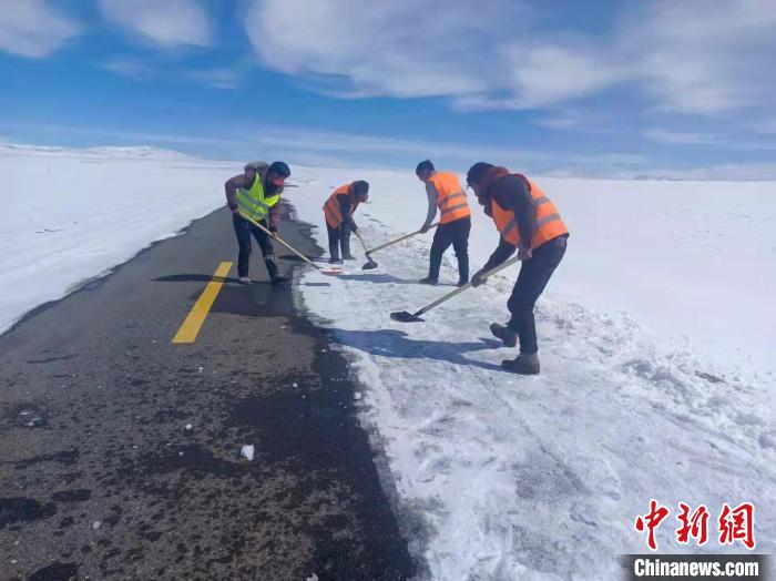 圖為西藏一線交通運輸部門組織護路員對農村公路開展除雪保暢?!∥鞑刈灾螀^(qū)交通運輸廳供圖