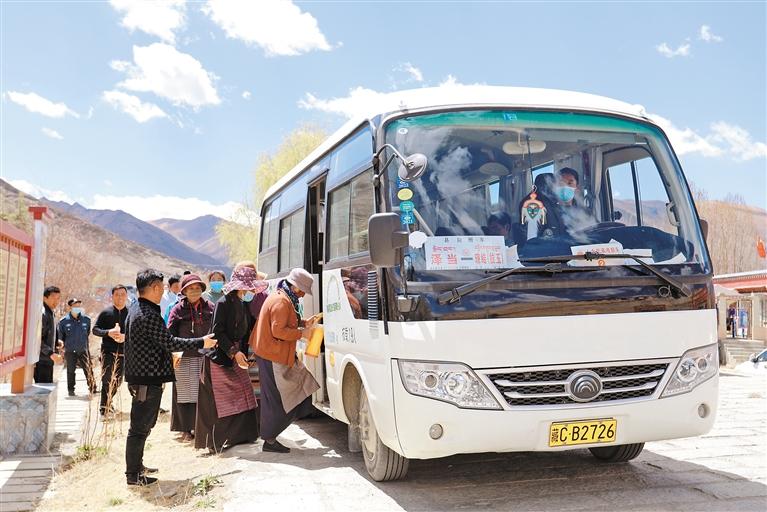 圖為山南市瓊結(jié)縣定時(shí)發(fā)車(chē)的農(nóng)村客運(yùn)班車(chē),讓群眾出行更方便更安全。