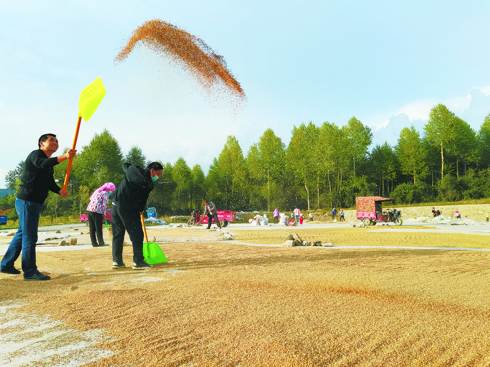 金秋時(shí)節(jié),海東市互助土族自治縣丹麻鎮(zhèn)哇麻村一片豐收景象。隨著農(nóng)作物陸續(xù)成熟,田地?fù)Q上了“金裝”,農(nóng)戶搶抓晴好天氣收割、晾曬小麥和油菜籽,人們用勞動(dòng)成就幸福生活,用豐收喜迎黨的二十大勝利召開。