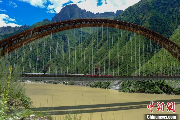 圖為一列火車經(jīng)過西藏雅魯藏布江藏木大橋。 江飛波 攝