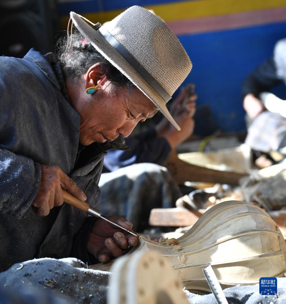 合作社的工匠在制作扎念琴(1月19日攝)。新華社記者 晉美多吉 攝
