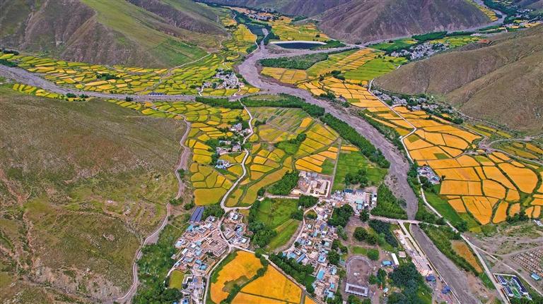 圖為俯瞰山南市瓊結(jié)縣拉玉鄉(xiāng)強(qiáng)吉村農(nóng)村公路。記者 白瑪澤旺 通訊員 倫珠澤仁 攝