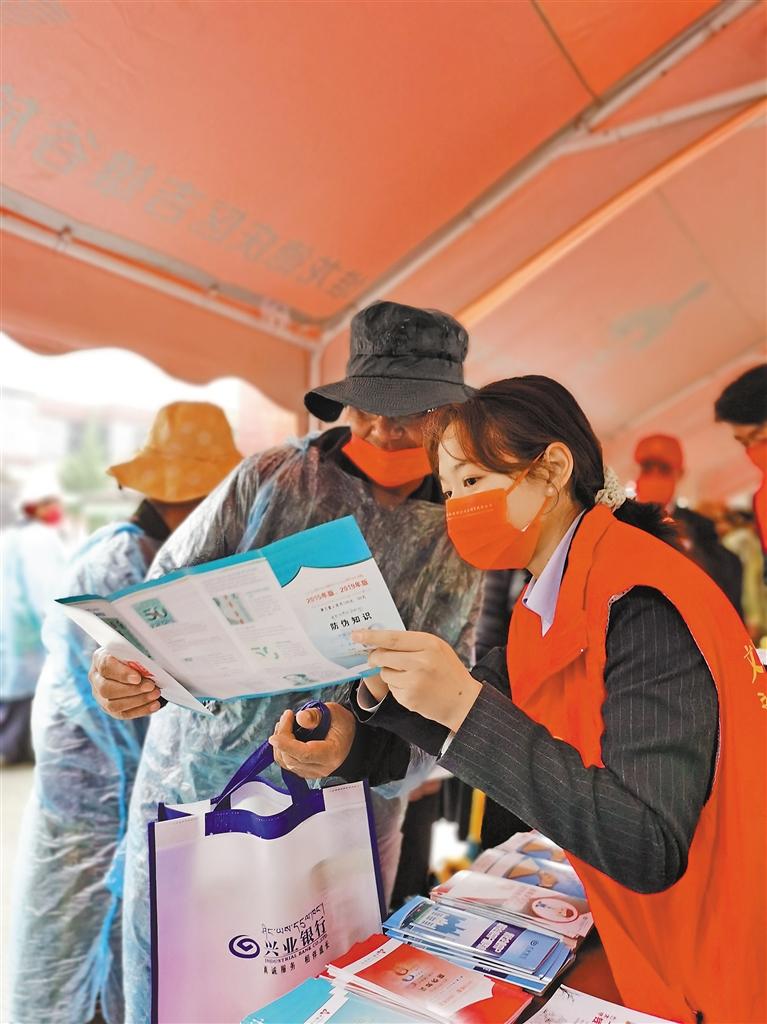 圖為興業(yè)銀行拉薩分行志愿者開展金融知識宣傳。