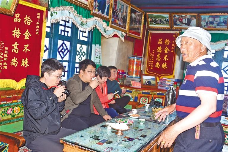 平措在家庭旅館內(nèi)招待北京來的游客。 記者 張猛 攝