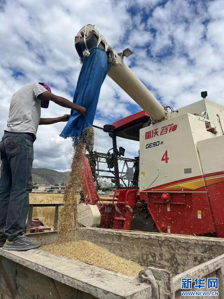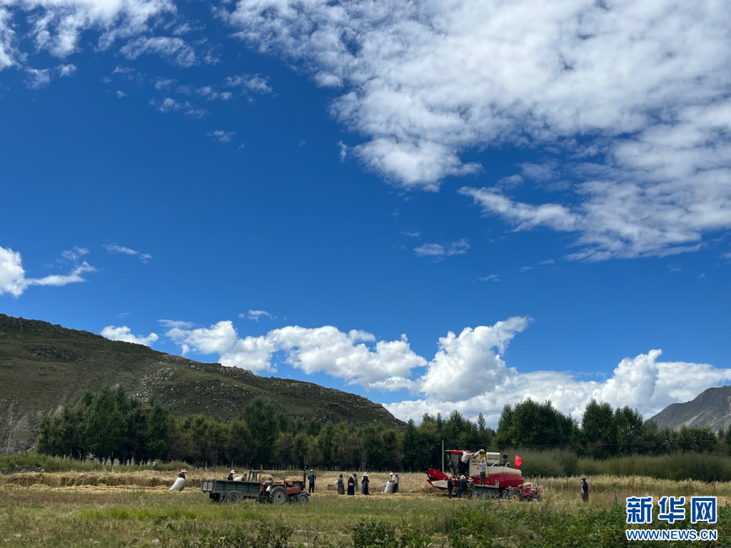 圖為在西藏拉薩市達孜區(qū)拍攝的秋收場景(9月4日攝)。新華網(wǎng)發(fā) 卓嘎?lián)碜?攝