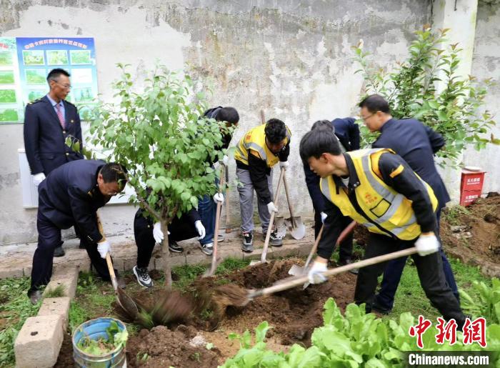 圖為拉薩基礎(chǔ)設(shè)施段黨員代表在援建溫室大棚植樹(shù)?!●R生明 攝