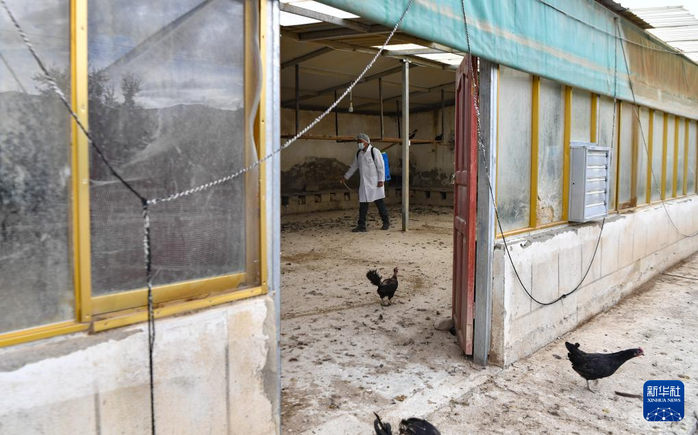 9月24日,合作社工作人員對雞舍進行消毒。新華社記者 晉美多吉 攝