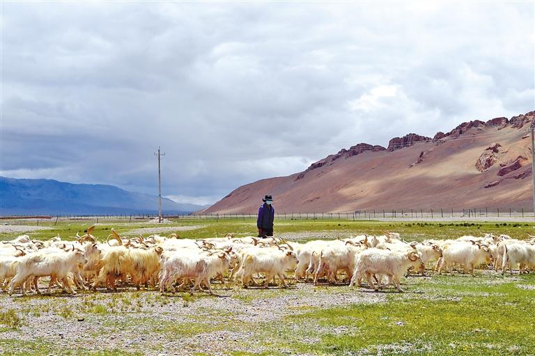 阿里地區(qū)革吉縣絨山羊擴(kuò)繁基地飼養(yǎng)的白絨山羊。 記者 洛桑 攝