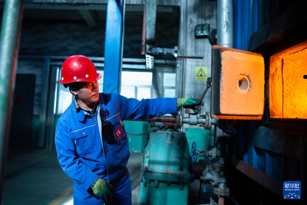 12月15日,熱源廠工人扎巴在查看鍋爐燃燒情況。新華社發(fā)(旦增努布攝)