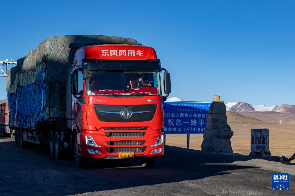 申扎縣供銷合作社從西寧采購新鮮果蔬的貨車經過唐古拉山口(1月3日攝)。 新華社記者曹檳 攝