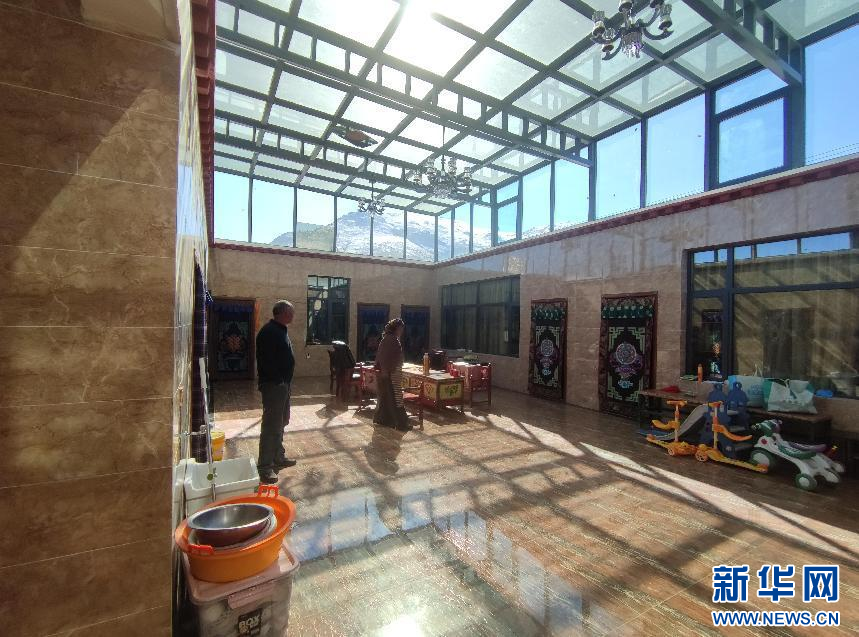 村民貢嘎是克日村第二批“美麗鄉(xiāng)村·幸福家園”建設(shè)行動計劃的參與者,翻新房子70%的費用由當?shù)卣a貼,自己只需支付30%,如今房屋已改造完畢,一家子正式入住。孫子們在光潔的地面玩耍,和煦的陽光從屋頂?shù)年柟馀镎者M客廳,溫暖了整個冬天。