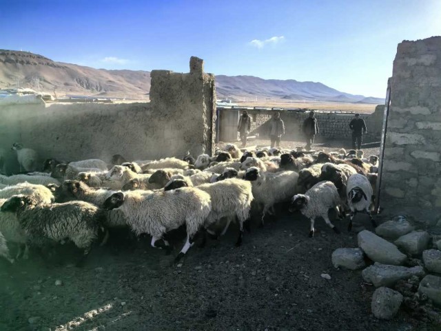 太陽(yáng)翻過(guò)雪山,灑滿西藏日喀則市崗巴縣崗巴鎮(zhèn)雪村的大地時(shí),穿著羊皮袍子、皮膚黝黑的扎西多杰準(zhǔn)時(shí)打開(kāi)了圈門。隨著此起彼伏的“咩咩咩”聲,羊群就像開(kāi)閘的洪水般傾瀉而出,踏出滾滾塵煙。