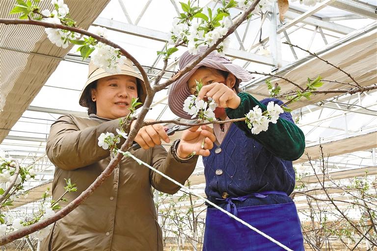 圖為尼木縣“點對點”干部德吉(左一)向群眾傳授車厘子種植技術。(圖片由中共尼木縣委宣傳部提供)