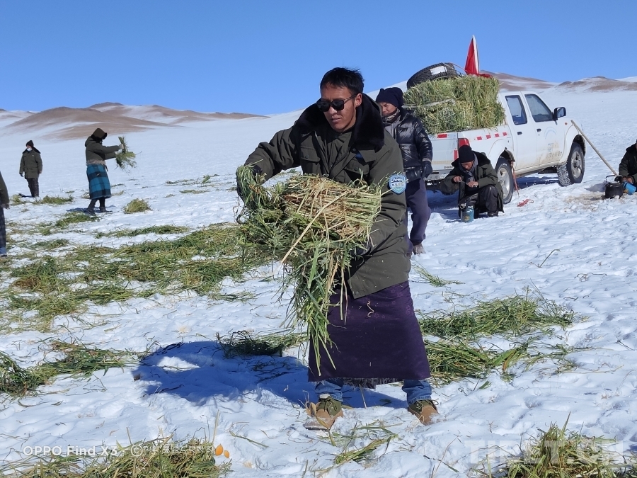 圖為贊康管理站站長(zhǎng)邊巴給野生動(dòng)物放草(邊巴供圖)