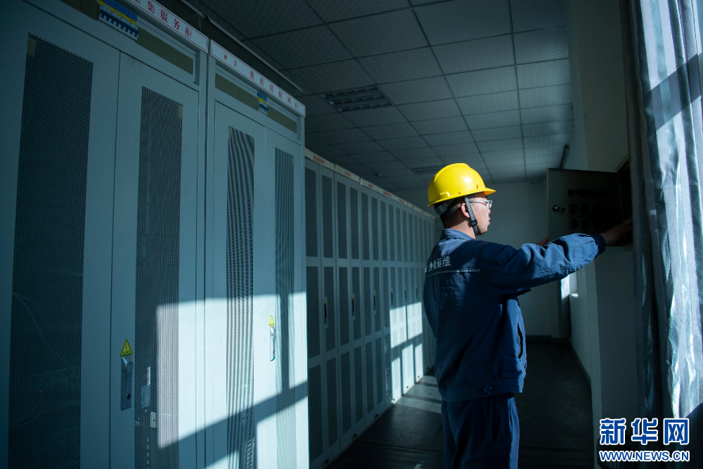 工作人員在110千伏協(xié)合措美縣20兆瓦M(jìn)W并網(wǎng)光伏電站進(jìn)行日常檢查。新華網(wǎng) 旦增努布 攝