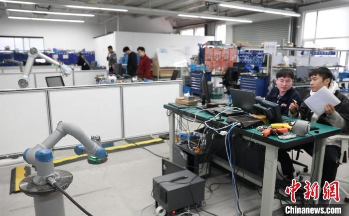 人工智能讓中國制造業(yè)從“追趕者”變身“領(lǐng)跑者”。圖為中科新松的工作人員正在對機器手臂進行位置標定。 張亨偉 攝