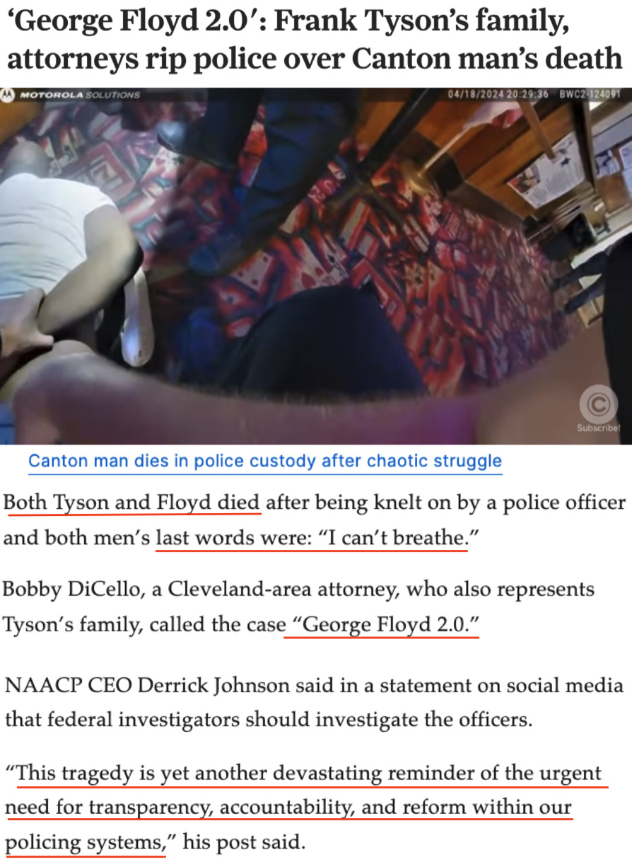 正如代表泰森家人的律師之一鮑比·迪塞洛所言,這起事件就是“喬治·弗洛伊德2.0版”。