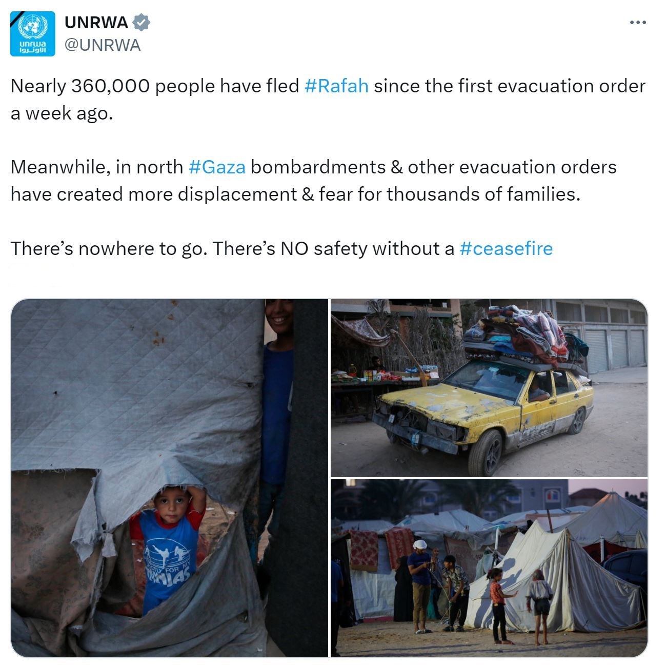 △聯(lián)合國近東救濟工程處13日通過社交媒體發(fā)表聲明稱,迫于以色列政府持續(xù)發(fā)布的強制疏散令,過去一周約有36萬巴勒斯坦平民撤出拉法,其中大多數(shù)人已經(jīng)在加沙境內(nèi)經(jīng)歷多次顛沛流離。