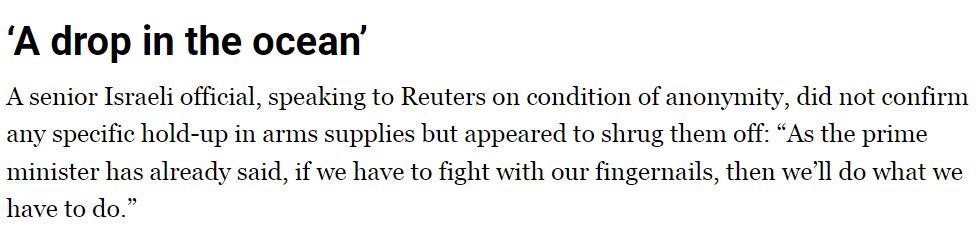 △卡塔爾半島電視臺網(wǎng)站:雖然內(nèi)塔尼亞胡政府嘴里說氣話,但其實心里不以為然,因為與美國提供給以色列的巨量武器相比,暫停運送的武器只是“滄海一粟”。