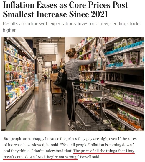 “你告訴人們‘通脹率正在下降’,他們會想‘我不明白這是什么意思,因為我買的所有東西的價格都沒有降下來’。事實(shí)上,他們想得沒錯。”